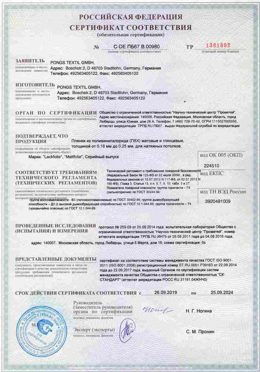 Мы подтверждаем свой профессионализм и качество материалов сертификатами.